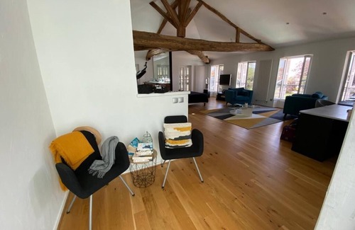 Nestled in Rochefort, this 4-bedroom, 4-bathroom vacation home brings it all within your reach. Fans of nature and the outdoors will love being 3 minutes by car from Bay of Biscay and 24 minutes from Plage de Marennes. Musée Hèbre de Saint-Clement is just steps away while Hermione is an easy 9-minute walk away.