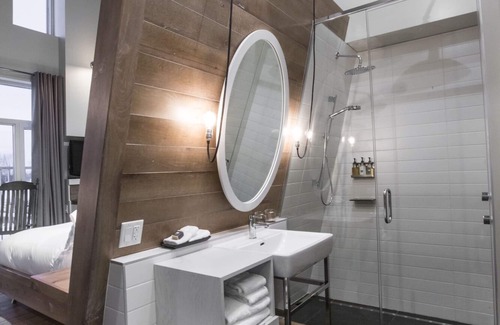 Hôtel & Spa Le Germain Charlevoix offers 145 air-conditioned accommodations with safes and coffee/tea makers. Beds feature down comforters and premium bedding. A pillow menu is available. Flat-screen televisions come with pay movies. Bathrooms include bathrobes, complimentary toiletries, and hair dryers.