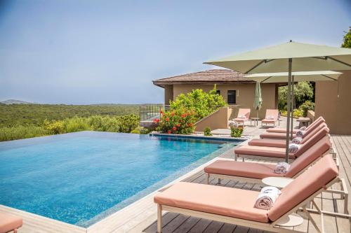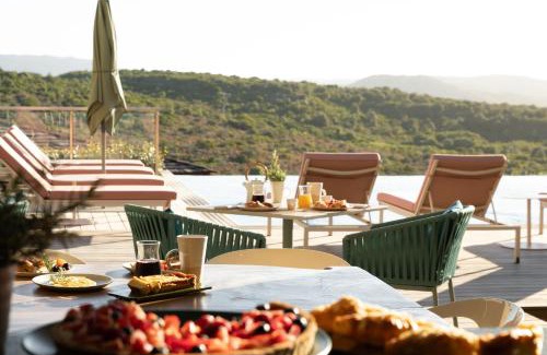 Hôtel Version Maquis is located in the Bonifacio countryside, overlooking the Santa Manza Bay. The property offers an outdoor pool, a free shuttle to the beach, a garden and free Wi-Fi. All rooms feature contemporary decor, a terrace with sea views, a flat-screen TV, a desk and a mini bar. The private bathrooms are fully equipped and come with free toiletries. A buffet breakfast is provided every morning and the hotel has an onsite bar. Restaurants can be found 3.7 mi away. The property is 4.3 mi from Bonifacio, 12 mi from Porto-Vecchio and 12 mi from Figari. Free parking is possible on site. The Sperone Golf Course can be found 4.3 mi away.