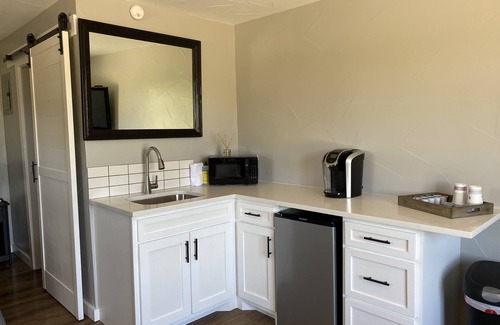 H4 Hideout is a brand new one bedroom, one bath cabin that sleeps four people. Kitchenette has a sink, mini fridge, microwave, coffee maker, dishes, and silverware available for your use. Sleeping consist of one full bed and one twin, with a pull out twin trundle. All sheets, blankets, and towels are provided. Satellite tv is provided. H4 Hideout offers plenty of open space for those needing room to park large trailers/ boats.
