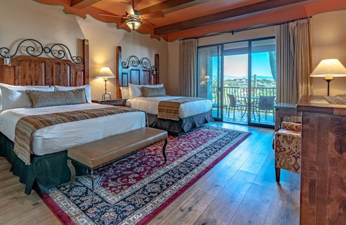 Hacienda Del Sol features exquisite accommodations designed for comfort and elegance, boasting 97 individually furnished rooms with pillowtop mattresses and luxurious bathrooms. Enjoy on-site amenities such as three outdoor swimming pools, a full-service spa, and fitness center, ensuring relaxation and pampering before and after your big day. Indulge in delightful culinary experiences at the two on-site restaurants, providing a perfect setting for pre-wedding gatherings or intimate post-ceremony celebrations. Additionally, complimentary WiFi and business-friendly amenities ensure all your guests stay connected during their stay.