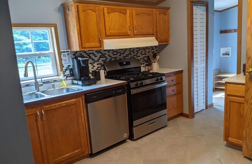 Trade the hustle of city life for a laidback Michigan retreat when you book this 3-bed 2-bath home perfectly located just outside Ludington, 10 minutes from Stearns Park Beach or Ludington State Park, and 20 minutes to Pentwater or Silver Lake. Local activities include hiking, golfing, strolling beautiful beaches, shopping at downtown shops, climbing beautiful sand dunes, or simply relaxing at the beach or on the beautiful deck outside, or enjoy a nice fire outside (firewood provided).