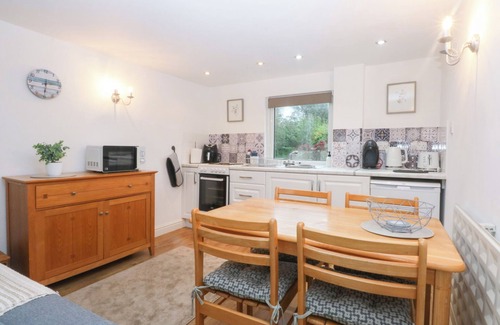 Amenities: Electric central heating and plug-in heater. Electric oven and hob, microwave, fridge with ice box, air fryer, coffee maker, kettle, toaster. TV. Fuel and power inc. in rent. Bed linen and towels inc. in rent. Travel cot and dining booster seat available. Private, off-road parking for 1 car. Enclosed patio with mature shrubbery and furniture. Two well-behaved pets welcome. Sorry, no smoking. Shop 0.7 miles, pub and beach 0.9 miles. Note: One step into the open-plan space from patio doors. Note: Please mind your head on entry. Note: There is WiFi at this property. Note: This property has a Good Housekeeping Bond of £100