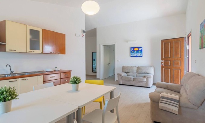 The apartment is located on the first floor of a building with a lift and all internal spaces are completely at your disposal. The external part of the facility is shared with other guests of the inclusive village. The spaces are very large, so there will be the possibility of both socialising and...