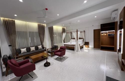 Haldi Kumkum Resort has an outdoor swimming pool, garden, a shared lounge and terrace in Limodra. With free WiFi, this 5-star hotel offers a kids' club and room service. There's a restaurant serving Chinese cuisine, and free private parking is available. The hotel will provide guests with air-conditioned rooms offering a closet, an electric tea pot, a fridge, a minibar, a safety deposit box, a flat-screen TV and a private bathroom with a bath. At Haldi Kumkum Resort, rooms have a seating area. The accommodation offers a hot tub. Round-the-clock assistance is available at the reception, where staff speak English and Hindi. Surat Airport is 24 miles from the property.