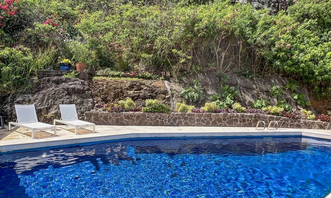 * Solar-heated pool tucked into the hillside