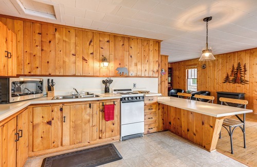 Located in Hale, Michigan, this 2-bed, 1-bath vacation rental cottage is a throwback to simpler times. You're encouraged to unplug and unwind here, with a nearby boat launch where you can bring your watercraft, a waterfront fire pit, and oversized picture windows that provide a gorgeous view of Long Lake — and the perfect reading spot. While you won't find any big-box stores nearby, you won't miss them with the Huron-Manistee National Forests and Lake Huron beaches 30 miles from your door.