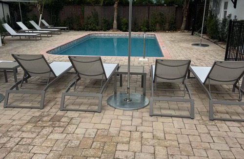 While you're here, you can enjoy all the comforts of home and more, including a heated pool and free WiFi, as well as a flat-screen TV and a coffee/tea maker. Other amenities include premium bedding, a pillowtop bed, towels, and a portable fan.
