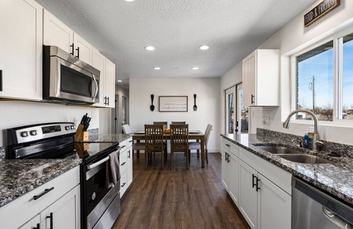 Both living rooms immediately feel like home! Find your place on the comfy sofa, cuddle up with a good book by the intimate fireplace, or discuss your upcoming Riverton and Salt Lake City adventures.