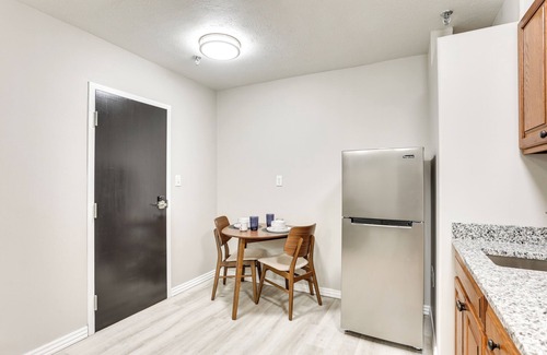 - Single-story apartment, step-free entry
