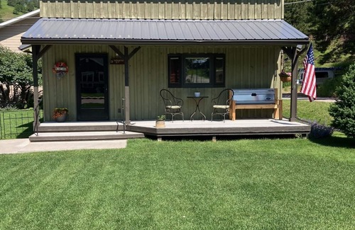 The Burlington Bunkhouse is located a half mile from Deadwood's Main Street in a quiet neighborhood. The trolley stop for hitching a ride downtown is half a block away and the Mickelson Trail for exploring or walking to Main Street is a block away. The quaint home is the perfect get away for enjoying the Black Hills and all that it offers. There is a covered porch to enjoy the great view. The kitchen, dining, and living area are spacious and bright for resting after a long day. The kitchen, dining room, and living room are one open area with a counter for additional seating, along with a dining room table for four. The appliances are all full sized. There are two TV's. One in the living room and one in the bedroom with cable access. There is a walk in shower with grab bars by the toilet. A stackable washer and dryer is available for use. The bedroom has a queen size bed with an adjustable base and large closet. There is a queen size sofa sleeper in the living room. Grill available.