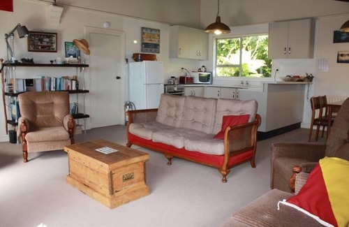 Relax and enjoy the abundance of birds - tui, kaka, and kereru from the deck. With sea views in a private surrounding.