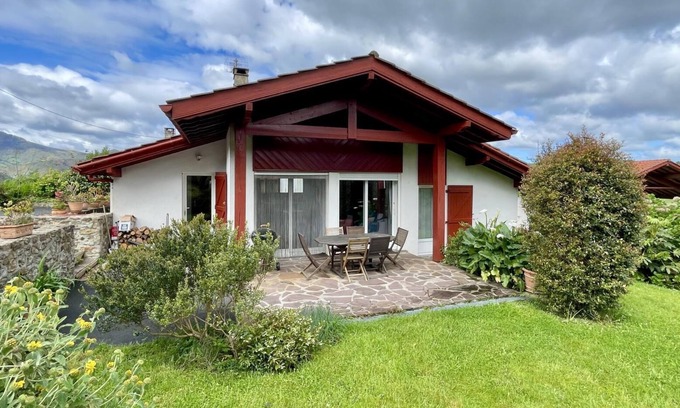 Detached single-story cottage located 10 minutes from the Cambo-les-Bains thermal baths, in a green setting on a working farm. This cottage offers large windows overlooking the Basque hillside landscape and invites relaxation. Kitchen (microwave, gas/electric hob, oven, dishwasher, fridge-freezer), living room, lounge area (fireplace/insert), 2 bedrooms (2 double beds, 1 single bed), shower room, toilet. Electric and wood heating available at an additional cost. Bed linen and towels available at an additional cost. Large enclosed garden, garden furniture, barbecue. Private parking.
