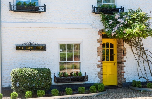Set in an acre of garden with a huge outdoor pool, Hall Farmhouse is an elegant, period farmhouse in a picture postcard setting. The addition in recent years, of a 120sqm kitchen with sliding glass wall gives guests ininterrupted views and level access to the pool and patio.