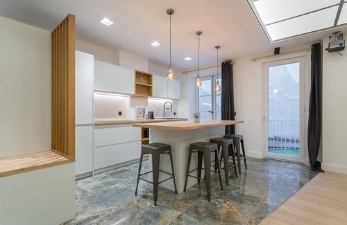 The design kitchen is fully equipped, open to the living room with a beautiful central island and its high chairs, appliances and kitchen utensils available. You will have 2 beautiful bedrooms with double queen size beds, televisions and storage, as well as 2 bathrooms with walk-in showers for your comfort.