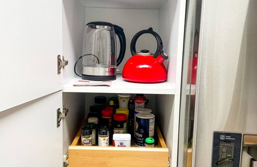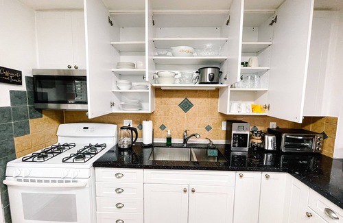 Our kitchen is fully stocked, so you can make even the fanciest of meals here! We supply all the standard housekeeping items and utensils, plus some great extras like serving utensils, grilling tongs, a rice cooker, and blender. Margaritas, anyone?