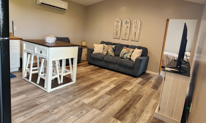 This cozy cabin retreat is in Fort Scott with 2 bedrooms - 1 king bed and 2 twin beds. Enjoy the convenience of a heater, and AC along with fans and a blow dryer. The bathroom features a shower and a washer and dryer. Make your vacation one for the books with a stay at our place.
