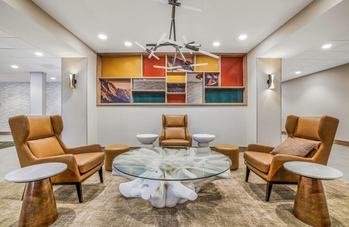 Recreational amenities at the hotel include an indoor pool and a 24-hour fitness center.