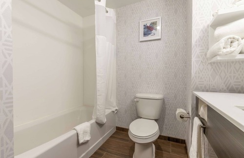 Bathrooms include bathtubs or showers with rainfall showerheads, complimentary toiletries, and hair dryers. Flat-screen televisions are featured in guestrooms. Additionally, rooms include irons/ironing boards and blackout drapes/curtains. Housekeeping is provided daily.