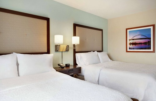 Hampton Inn Clackamas offers 112 accommodations with complimentary newspapers and coffee/tea makers. 45-inch LCD televisions come with premium cable channels. Bathrooms include bathrobes, complimentary toiletries, and hair dryers.