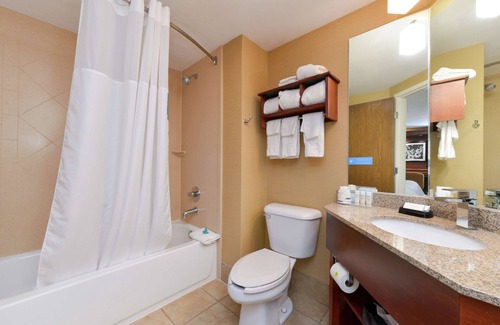 An indoor pool, a 24-hour fitness center, and a snack bar/deli are available at this hotel. Free self-serve breakfast, free WiFi in public areas, and free self parking are also provided. Additionally, coffee/tea in a common area, a business center, and a meeting room are onsite.