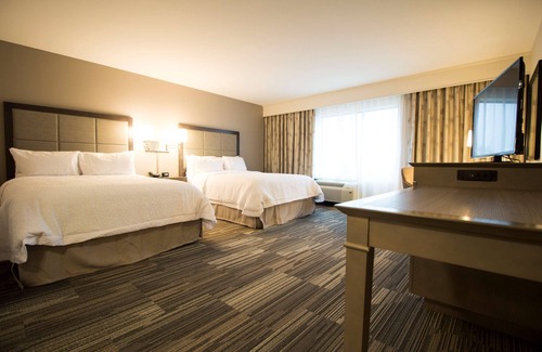 Hampton Inn Decatur Mt. Zion offers 80 air-conditioned accommodations with laptop-compatible safes and coffee/tea makers. Televisions come with cable channels. Guests can make use of the in-room refrigerators and microwaves. Bathrooms include complimentary toiletries and hair dryers.