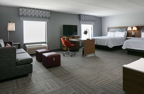 Hampton Inn Dubuque offers 97 air-conditioned accommodations with coffee/tea makers and hair dryers. Pillowtop beds feature down comforters and premium bedding. 37-inch flat-screen televisions come with premium cable channels and pay movies.