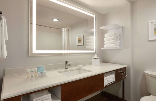 Hampton Inn Dulles - Cascades offers 152 accommodations with safes and coffee/tea makers. Flat-screen televisions come with premium cable channels. Refrigerators and microwaves are provided. Rooms have partially open bathrooms. Bathrooms include shower/tub combinations, complimentary toiletries, and hair dryers.