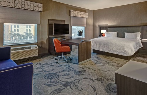 Hampton Inn Fresno Airport offers 115 air-conditioned accommodations with coffee/tea makers and hair dryers. Flat-screen televisions are featured in guestrooms. Guests can make use of the in-room refrigerators and microwaves. Bathrooms include shower/tub combinations and complimentary toiletries.