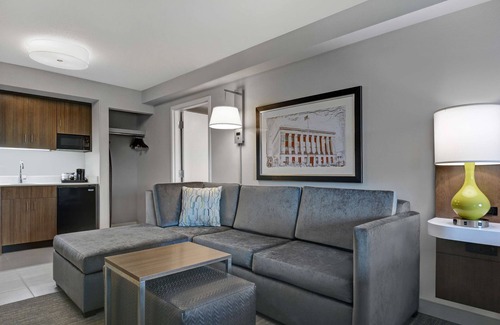Recreational amenities at the hotel include a fitness center and a seasonal outdoor pool.