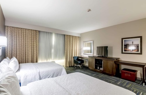 Hampton Inn Oklahoma City Northeast offers 72 accommodations with laptop-compatible safes and safes. Rooms open to patios. Beds feature down comforters and premium bedding. A pillow menu is available. 42-inch LCD televisions come with premium cable channels. Refrigerators, microwaves, and coffee/tea makers are provided. Bathrooms include bathtubs or showers with hydromassage showerheads, bathrobes, and hair dryers.