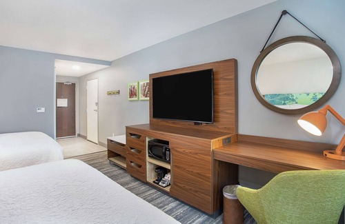 Hampton Inn Simpsonville offers 80 accommodations with complimentary bottled water and coffee/tea makers. Pillowtop beds feature Egyptian cotton sheets, down comforters, and premium bedding. A pillow menu is available. 55-inch LCD televisions come with premium cable channels. Guests can make use of the in-room refrigerators and microwaves. Bathrooms include bathtubs or showers with hydromassage showerheads, complimentary toiletries, and hair dryers.
