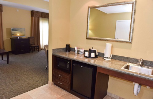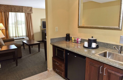 Hampton Inn & Suites Alexandria offers 138 accommodations with safes and complimentary newspapers. 32-inch LCD televisions come with cable channels. Refrigerators and coffee/tea makers are provided. Bathrooms include bathtubs or showers, complimentary toiletries, and hair dryers.