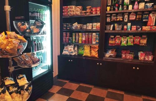 This hotel is located 40 minutes south of downtown Edmonton and 10 minutes from the Edmonton International Airport. It offers free airport transportation, an indoor pool and rooms with free Wi-Fi. Hampton Inn and Suites Edmonton’s rooms are equipped with a 32-inch flat screen cable TV, coffee maker and a work desk. Select rooms have a microwave and refrigerator. Hampton Inn and Suites by Hilton Edmonton International Airport features a gym and 24-hour business center. Guests can visit the on-site convenience store or the currency exchange desk. A hot breakfast buffet is served daily at the Edmonton Airport Hampton Inn. The RedTail Landing Golf Club is 3 miles from this Hampton Inn and Leduc Community Hospital is a 10-minute drive from the hotel. Commonwealth Stadium is within an hours’ drive away.