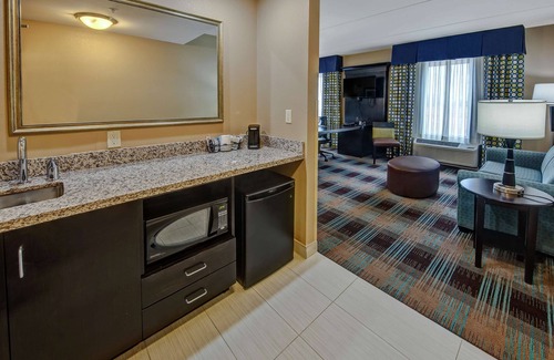 Hampton Inn & Suites Clarksville offers 85 air-conditioned accommodations with laptop-compatible safes and coffee/tea makers. 39-inch flat-screen televisions come with cable channels. Guests can make use of the in-room refrigerators and microwaves.