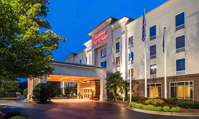 Hampton Inn & Suites Clinton - I-26 offers 100 accommodations with safes and coffee/tea makers. Pillowtop beds feature premium bedding. 43-inch Smart televisions come with premium cable channels and Netflix. Refrigerators and microwaves are provided. Rooms have partially open bathrooms.