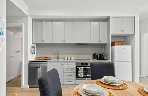 Enjoy the same cool, classic sophistication the Hamptons are known for. The off-whites and chic pops of blues create a real calm coastal vibe. More spacious than most apartments, up to 4 guests can comfortably reside here. Youll have all the modern conveniences youd expect, such as dishwasher, espressotoria pod coffee machine, a pura tap for great tasting filtered drinking water plus extras (like the fully equipped euro laundry!).