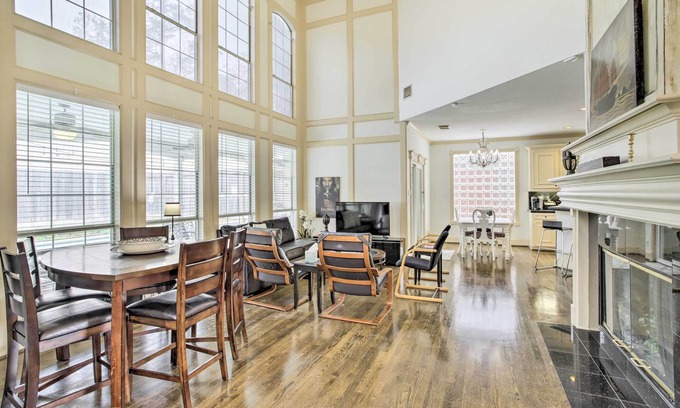 Situated about 9 miles from downtown, this pet-friendly vacation rental home in Houston, TX, is perfect for your next family getaway! This elegant 3-bedroom, 2-bathroom home features a full kitchen, bonus sleeping areas, and a covered patio where you can dine and relax by the private pool. Head to Hermann Park to explore the Houston Zoo and Houston Museum of Natural Science or peruse shops at Memorial City Mall! Later, you can unwind with Smart TVs, gas fireplaces, and all the comforts of home.