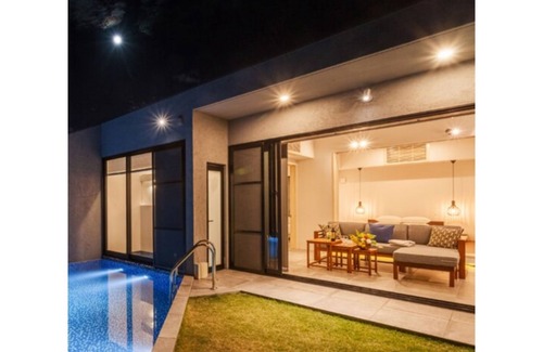 There is a lawn terrace and you can overlook the sea from your room through the private pool