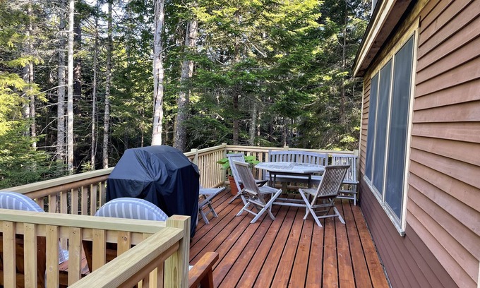 Escape the tourist crowded streets and slip away into the quiet woods on Hancock Point. Known for its magical views of Acadia and Cadillac Mountain, Hancock Point is a charming summer community offering a variety of leisure and summer events. Our timber frame home is nestled in the woods, offering privacy and solitude, but close enough to walk to the beach, town dock, tennis courts and the nearby restaurant. The home is a custom built timber frame, featuring tall wooden beam ceilings and ample natural light. Offering 4 bedrooms, 2 baths, a dinning space for 7 adults, a fully stocked galley kitchen, a large living room and access to the basement with washer/dryer and storage. The home has a cosy back deck for warm summer days, and a grill for barbecuing. The perfect home for your family to spend this summer in Maine.