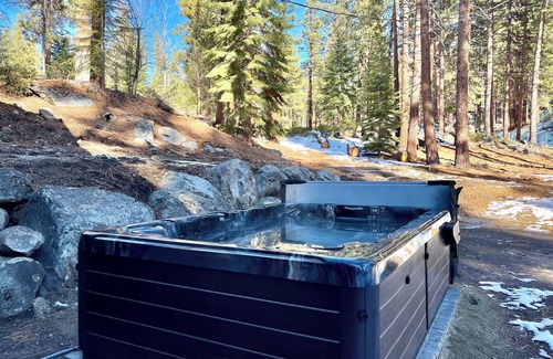 Unwind in our 8-person American Whirlpool hot tub, set at the edge of the forest and surrounded by towering pine trees. Whether under the stars or amidst falling snow, it’s the perfect spot to connect with Tahoe's serene beauty while enjoying total relaxation.