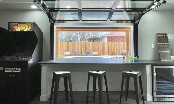 This stunning newly remodeled home is the ideal spot for entertaining and relaxing all within 20 miles of downtown Austin. The Hangout was specifically designed to accommodate large groups, sleeping up to 20 guests. This spacious 7 bedroom, 4450 square foot house features a pool, outdoor grill and patio dining area, large living room with big screen TV and completely open floor plan. There is the ultimate game room with indoor/outdoor bar and arcade games like classic Pacman as well as Golden Tee 2021 Home Edition and Walking Dead Arcade Game. Whether exploring Austin and the surrounding area or just looking for a place to gather with friends and family, The Hangout offers something everyone will love.