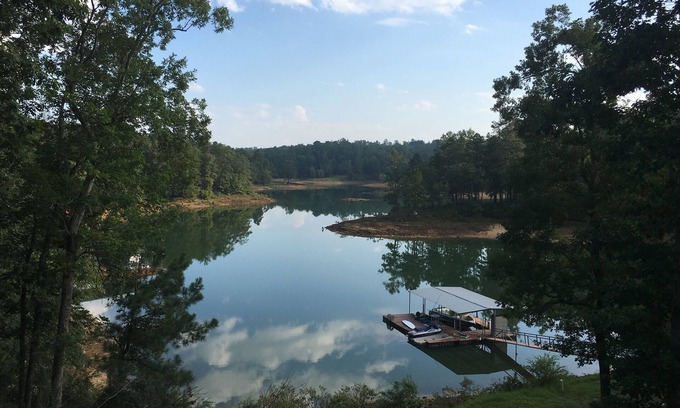 Hannah's Hideaway is a 2447 square foot luxury home located on 1.3 acres of land with 230 feet of lake frontage, large 2 slip covered boat dock, 1 slip with "Hydro-Hoist" boat lift, 2 Jet Ski drive on ports along with a large entertainment area and swim deck! We are located on a Little Dismal Creek. A Quiet, Low Traffic part of Lewis Smith Lake with great fishing, Kayaking and a YEAR ROUND deep water boat dock!
