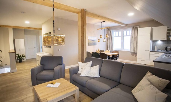 Hanses Hof vacation apartment type E is located in Alme. Hanses Hof vacation apartment type E provides accommodation, featuring Barbecue/Outdoor Cooking, Child Friendly, Kitchen, among other amenities. This Apartment features Barbecue/Outdoor Cooking, Child Friendly, Kitchen, to make your stay a comfortable one.