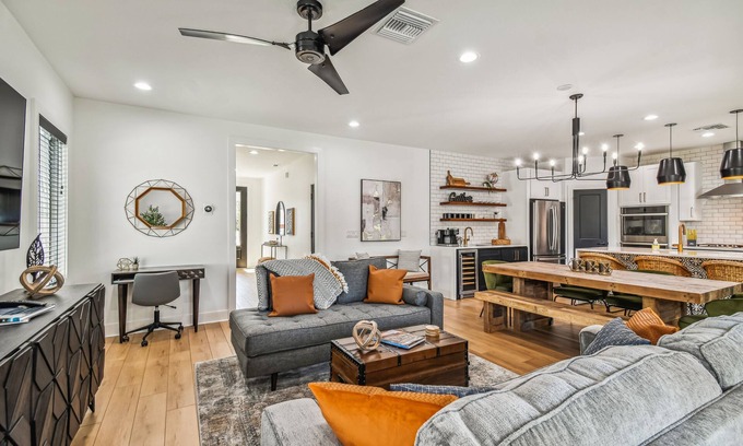 "Happiness Hideaway" is a one of kind, "CUSTOM" rental! This beautifully decorated home was designed by an HGTV personality & promises to deliver an over-the-top experience with lasting memories! Boasting Smart TV's in every room, high end furnishings throughout. Enjoy all that Tampa has to offer in style! Located in a gorgeous, quiet neighborhood, walking distance from the Hillsborough River! We're minutes away from Downtown Tampa, Bucs Stadium, Historic Ybor City, Armature Works, Tampa International Airport & more! Our centrally located home will not disappoint!