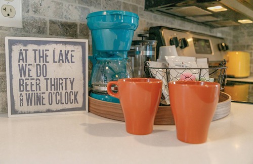 Going out not your thing? This home also has everything you'd need to stay in and cozy up, either on the front patio with grill & fire pit or inside where the furnishings are comfy and lake vibes are strong.