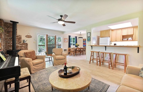 Happy Hollow, located in the heart of downtown Murphys, is an ideal gathering spot for family and friends. A comfortable, lovingly remodeled, single-level home on a sunny, 1/2 acre, fully fenced parcel with plenty of off-street parking, all within easy walking distance to everything downtown, including the Murphys Hotel, shops, restaurants, two dozen wine tasting rooms, community park, playground, and the river. This home sits one block off Main Street, so you are just about as close and convenient as most want to be to downtown, but without all the traffic, parking and noise issues. The home has a flexible, single-level design. The living room provides a central space to gather, with comfortable seating, a piano and two guitars for your enjoyment. On one side of the home sits the primary bedroom with a full bath and a second bedroom adjoining it, while the other two bedrooms and another bath sit on the opposite wing of the house. Both remodeled bathrooms have a tub and shower, plush towels, hair dryer and hotel toiletries. The remodeled kitchen is well-stocked for cooking and entertaining, with coffee beans, half and half, hot chocolate, tea, and basic spices provided. Dining room seating for eight plus breakfast bar seating for three more. The TV room off the kitchen has a couch and handy desk space, giving kids a quiet place away from adults. The adjoining laundry room has a washer and dryer, iron and ironing board. Five-star amenities like free WIFI, chocolates by the bedside, fresh flowers, snacks, toys and games for all ages, and gas BBQ have it stand out from the rest. When it's time to move the gathering outside, a generously-sized covered front porch provides nice shaded space for relaxing, BBQ'ing and entertaining, while the fully-fenced, front lawn and gated driveway allow plenty of safe play space kids and pets to play. The single-story layout is a comfortable choice for guests of all ages, with a pathway and no steps leading to the back door, providing easy access for those with limited mobility. Happy Hollow- where memories are made!