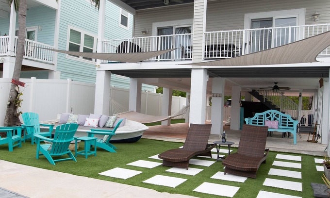 The lower level of the house is all about enjoying the outdoors. The mangroves directly across the street attract flocks of chirping Egrets and Spoonbills while the roosters crow in the morning. From the canal you can see manatees, catch some snapper or see sunbathing iguanas while you mingle with the neighbors. Take a relaxing dip in the canal or enjoy a sunset paddle on the kayaks. There are four bright Adirondack chairs and a cool boat bench surrounding a fire pit to keep you lounging into the night. In addition, there is a large covered patio with a dining set and a ceiling fan for alfresco dining. We also have a ping pong table and a corn hole game for more outdoor fun. Explore the Keys with kayaks and stand-up paddle boards included with the rental. Bring your bikes or rent one nearby, there are miles of paved trails that are perfect for exploring or bike riding to one of the many nearby restaurants and shops. The house is also within walking distance to a grocery store and a convenience store for all your needs. The front of the house offers ample parking. Bring your boat down or rent one here - but please let us know your plans so that we can make necessary accommodations.