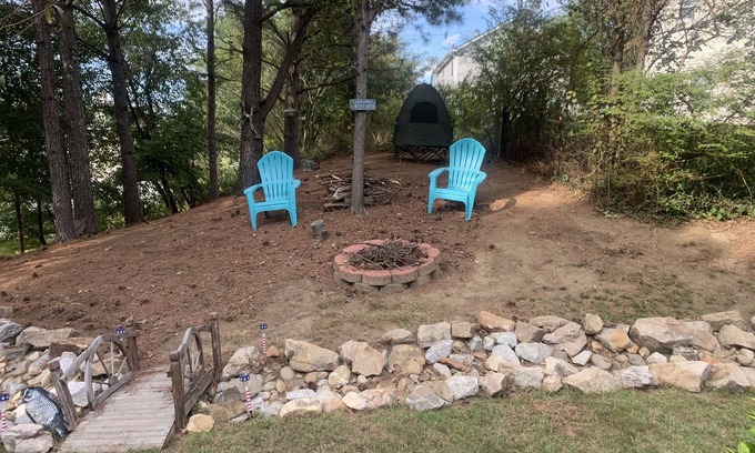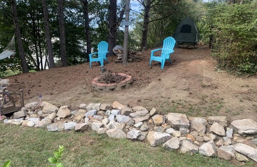 Guest House included in this deal. Come enjoy this Campsite settled in Enchanted Forest. Glamping. Do Enjoy cooking in the Fire Pit and telling stories. Have fun swinging in the Hammock. Relax in Sauna Pool. If rain comes no problem. Watch the water flow in the Bed Creek. Tent is available-for stay. This is not a campsite for RV or trailer. Also this site is located less than 10 min from Lake. BONUS: this site comes with a Guesthouse suitable for (4) guests. FYI: there is a Ring Camera Doorbell located at the front door and there is a Ring Doorbell Camera located at the back door. All recordings will deleted after each guest stay. Thanks