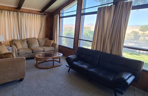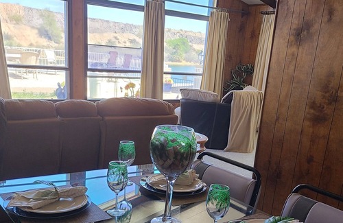 Guests will have full access to the entire private 3 bedroom, 2 bathroom triple wide mobilehome. Outside stairs lead down to a lower level, covered deck, and out to a rock beach and private dock. (Note: Headgate dam limits the flow of water, especially in the winter, and the dock is not always in the water but is always just a few steps away).